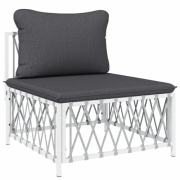 vidaXL Garten Mittelsofa, Gartensofa mit Kissen Stahlrahmen, Modular Lounge Sofa für Garten Terrasse, Gartenmöbel Loungemöbel, Weiß Gewebe
