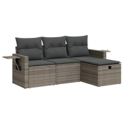 vidaXL 4-TLG. Garten-Sofagarnitur mit Kissen Grau Poly Rattan, Outdoor Sofa Set, Outdoor Sofagarnitur, Garten-Lounge-Set, Garten Sofagarnitur