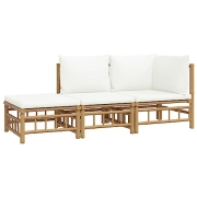 vidaXL Garten Lounge Set 3-TLG., Gartenmöbel Set mit Cremeweißen Kissen, Sitzgruppe für Garten Terrasse, Modular Sofa Garnitur Loungemöbel, Bambus