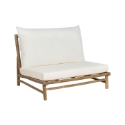 Niedriger Stuhl mit Kissen, ideal für den Innen- und Außenbereich. Hergestellt aus Bambusholz, das extrem haltbar und UV-beständig ist. Dank der mitgelieferten Rückenlehne und Sitzkissen ist der…
