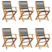 vidaXL Gartenstühle 6 STK., Gartenstuhl mit Armlehnen, Klappstuhl für Garten Balkon Terrasse, Stuhlset Gartenmöbel, Schwarz Massivholz Akazie
