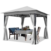 Brand: TOOLPORT TOOLPORT Gartenpavillon 3x3 m ca. 180g/m² Dachplane wasserdicht Pavillon - 4 Seitenteile Gartenzelt hell grau Partyzelt ca. 6x6cm Profil Product Type: PORTABLE_FREESTANDING_SHELTER…