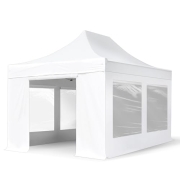 TOOLPORT Faltzelt Professional 3x4,5 m - mit 4 Seitenteilen (Panoramafenster) Faltpavillon ALU Pavillon Partyzelt weiß
