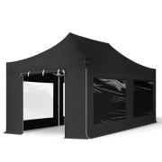 TOOLPORT Faltzelt Professional 3x6 m - mit 4 Seitenteilen (Panoramafenster) Faltpavillon ALU Pavillon Partyzelt schwarz