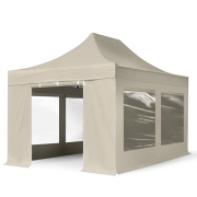 TOOLPORT Faltzelt Professional 3x4,5 m - mit 4 Seitenteilen (Panoramafenster) Faltpavillon ALU Pavillon Partyzelt Creme