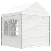 vidaXL Pavillon, Gartenpavillon mit Dach Seitenwänden, Gartenzelt Stahlrahmen, Partyzelt Festzelt, Weiß 2,28x2,23x2,69m Polyethylen
