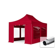TOOLPORT Faltzelt Professional 3x4,5 m - mit 4 Seitenteilen (Panoramafenster) Faltpavillon ALU Pavillon Partyzelt rot