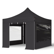 TOOLPORT Faltzelt Professional 3x3 m - mit 4 Seitenteilen (Panoramafenster) Faltpavillon ALU Pavillon Partyzelt schwarz