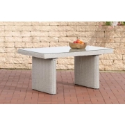 CLP Polyrattan Garten Esstisch FISOLO ca. 79 x 138 cm I Höhe: 67 cm I Glasplatte 5 mm Sicherheitsglas I 5mm Rattandicke, Farbe:perlweiß