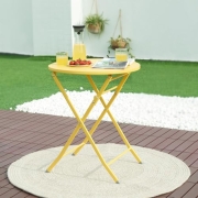 [en.casa] Gartentisch Sande Klapptisch 71 x Ø62 cm Balkontisch Stahl klappbar rund Gelb Outdoor-Beistelltisch faltbar