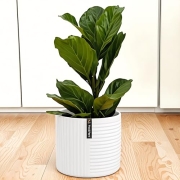 Fox&Fern Blumentopf L mit Linienstruktur - 27cm großer Übertopf inklusive Wasserabfluss für Pflanzen im Außen- & Innenbereich - passend für Fox&Fern Blumenständer L (30cm Durchmesser) - Farbe: Weiß