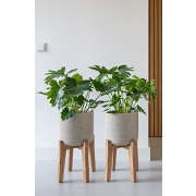 Finestgreen Charlie Feet High | Handgefertigtes Pflanzgefäß auf Holzfüßen (L Ø:32 H:51,5 cm, Grau) | Pottery Pots