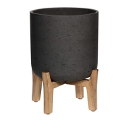 Finestgreen Charlie Feet High | Handgefertigtes Pflanzgefäß auf Holzfüßen (M Ø:23,5 H:38 cm, Schwarz) | Pottery Pots