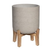 Finestgreen Charlie Feet High | Handgefertigtes Pflanzgefäß auf Holzfüßen (M Ø:23,5 H:38 cm, Grau) | Pottery Pots