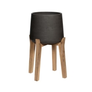 Finestgreen Patt Feet High | Handgefertigtes Pflanzgefäß auf Holzfüßen (M Ø:23 H:34,5 cm, Schwarz) | Pottery Pots