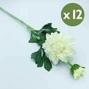 Wellhome Bouquet aus Dalia, mit natürlichem Griff, 8 Köpfen, Ø 9 cm, Weiß, 58 cm, 12 Stück