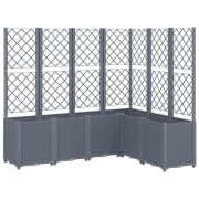vidaXL Pflanzkübel mit Rankgitter, Blumenkübel mit Rattan-Optik, Blumenkasten für Terrasse Garten, Gartenspalier Pflanzkasten, Blaugrau PP