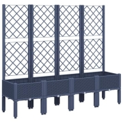 vidaXL Pflanzkübel mit Rankgitter, Blumenkübel mit Rattan-Optik, Blumenkasten für Terrasse Garten, Gartenspalier Pflanzkasten, Blaugrau PP
