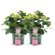 Green boutiQ - Balkonpflanze - Hortensie - Hydrangea Magical Green Fire - Rosa Grün - 6-10 Blüten - 2 Pflanzen - Topf 23cm Höhe 55cm