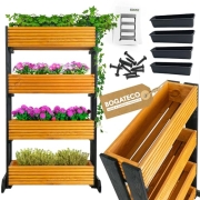 BOGATECO Set mit 4 Blumentöpfen auf einem Ständer | 4er Set Blumentopf Pflanzkübel 64x20cm | Holz Blumenkübel für Tomaten und Blumen, Pflanzentopf für Garten Balkon | 120cm Hoch