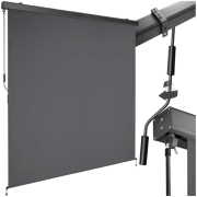 Diese schlichte, aber stilvolle Seitenmarkise bietet Privatsphäre und schafft einen gemütlichen Ort Diese Markise ist sowohl ein Windschutz als auch ein Sonnenschutz Die Blende ist aus UV-beständigem…