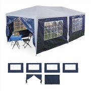 Relaxdays Seitenteile für Pavillon, 6er Set, 2x3m, wasserdicht, Fenster & Tür, PE, Seitenwände mit Klettverschluss, blau