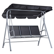 Outsunny Hollywoodschaukel mit verstellbarem Sonnendach, 3-Sitzer Gartenschaukel mit Anti-Rutsch-Füßen, wasserabweisend Schaukelbank belastbar bis 200 kg, für Garten, 172x110x153cm, Schwarz