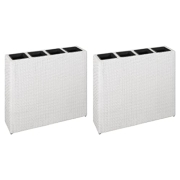 vidaXL 2X Hochbeet mit 4 Töpfen Blumenkübel Blumentopf Pflanzkübel Sichtschutz Pflanzgefäß Blumenkasten Pflanztopf Poly Rattan Weiß