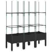 vidaXL Pflanzkübel mit Rankgitter, Blumenkübel mit Rattan-Optik, Blumenkasten für Terrasse Garten, Gartenspalier Pflanzkasten, Schwarz PP