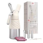 iSi Creative Whip Premium Sahnespender 250ml, Ivory White , aus Edelstahl , inkl. 3 Edelstahltüllen & 2 iSi Sahnekapseln , iSi Sahnespender für Sahne, Dessert & Herzhaftes , Spülmaschinenfest
