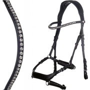 Zügel aus gewebtem Band mit extra kleinem Stopperabstand englisches Reithalfter stabile Schnallen Stirnband mit synth. Diamanten gepolstertes Nasen- und…
