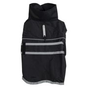 JACK AND VANILLA Stilvoller Mantel für Hunde, Schutz vor Kälte, leicht und verstellbar, mit reflektierenden Streifen für Sicherheit, Größe S, Schwarz, 30 cm, Expeditionsmodell