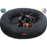 Lovpet® Hundebett Hundekissen Katzenbett Bagel, Waschbar, Inkl. Napf + 3X Kauknochen, Hundesofa flauschig Kissen Rund aus Plüsch für Kleine, Mittelgroße & Große Hunde, Katzen [4XL, Ø 120cm Anthrazit]