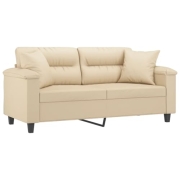 vidaXL Sofa 2 Sitzer, Couch mit Kissen, Liegesofa für Wohnzimmer, Polstersofa Sessel Relaxsofa Loungesofa Relaxcouch, Creme Mikrofasergewebe