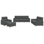 vidaXL Sofagarnitur 4-TLG., Sessel Couch mit Kissen Fußhocker, Sofa Wohnzimmersofa mit Armlehnen, Couchgarnitur Designsofa Sitzmöbel Polstermöbel, Dunkelgrau Stoff