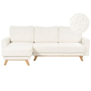 Beliani 3-Sitzer Ecksofa Bouclé weiß L-Form mit Schlaffunktion Chaiselongue rechts Siro