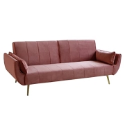 invicta INTERIOR Retro Schlafsofa DIVANI 220cm Altrosa Samt goldene Füße Bettfunktion 3er Sofa Schlafcouch Schlaffunktion Couch