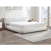Vente-unique-Bett - 140 x 190 cm - Bouclé-Stoff - Weiß & Holzfarben - GAMURA