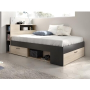 Vente-unique-Bett mit Kopfteil, Stauraum & Schubladen - 120 x 190 cm - Holzfarben & Anthrazit - Leandre