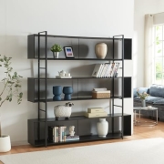 [en.casa] Bücherregal Øvre Standregal mit 5 Ablagen Bücherschrank Regal 139x80x30 cm Schwarz