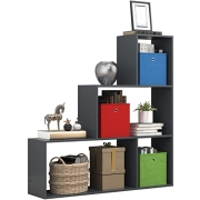 VCM Holz Stand Treppenregal Stufenregal Standregal Raumteiler Bücherregal Dubila M Anthrazit