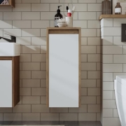 ROOMART Badmöbelset • Leo • Unterschrank mit Waschbecken • Badezimmer Möbel • Gäste WC (Weiß-Eiche, Seitenschrank)