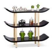 Relaxdays Retro Standregal im Zickzack Design, Dekoregal für DVD, CDs, schmales Bücherregal HxBxT 75x30x30 cm, schwarz