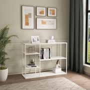 [en.casa] Standregal Isojoki Bücherregal Metallregal Wohnzimmer Weiß Regal stehend 120 x 35 x 87,5 cm