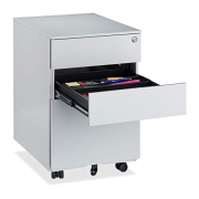 Relaxdays, grau Büro Rollcontainer, 3 Schubladen, abschließbar, Stiftablage, 360° drehbare Rollen, Stahl, HBT 60x39x52cm
