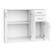 MATKAM Kommode 3D2S, B110 x H85 x T35 cm, Sideboard mit 2 Schubladen und 2 Fächer mit Türen, ideal für Büro, Diele, Wohnzimmer, Jugend- oder Kinderzimmer (Weiß)