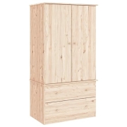 vidaXL Kleiderschrank, Garderobenschrank mit Kleiderstange, Schlafzimmerschrank Schrank mit 2 Schubladen, Holzschrank Flurschrank, Massivholz Kiefer