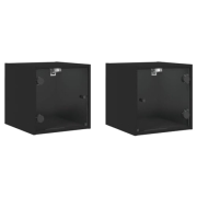 vidaXL Nachttische 2 STK., Nachttisch mit Glastür Stauraum, Nachtkommode für Schlafzimmer, Nachtkonsole Nachtschrank Wandschrank, Modern, Schwarz Holzwerkstoff