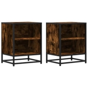 vidaXL Nachttische 2 STK. Räuchereiche 40x31x50cm Holzwerkstoff Metall, Nachtschrank, Betttisch, Beistelltisch, Bettschrank