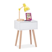 Relaxdays Nachttisch skandinavisch, Retro, Nachtschrank mit Schublade, HBT: 55x42x30cm, Beistelltisch Schlafzimmer, weiß, 1 Stück